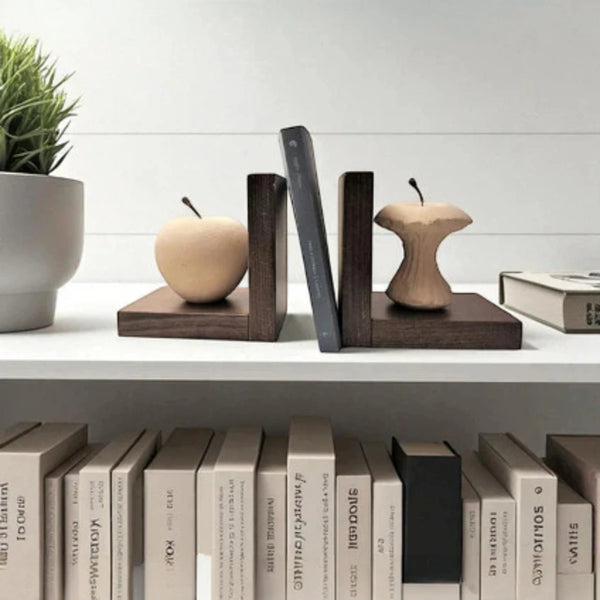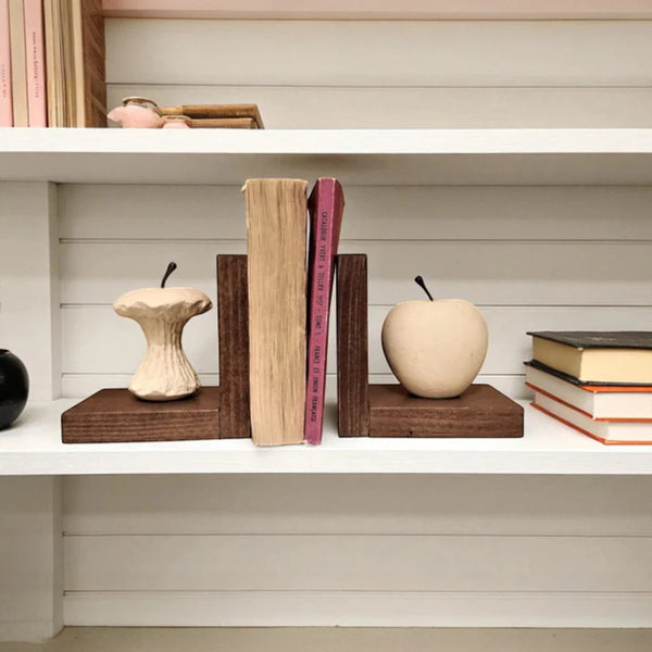 Il set comprende due elementi: da un lato la mela intera, simbolo di vita e abbondanza, dall’altro il torsolo, che rappresenta autenticità, essenzialità e il ciclo naturale della vita. Insieme creano un contrasto suggestivo, capace di trasformare anche una semplice fila di libri in una composizione decorativa che racconta una storia.