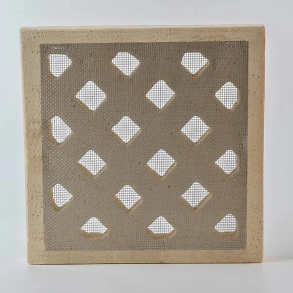 Griglia di aerazione e ventilazione quadrata in pietra di Matera, cm20x20, uso esterno ed interno. Prodotto lavorato artigianalmente.
