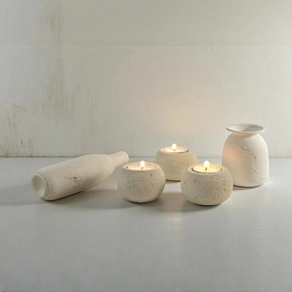 Realizzati a mano nel tufo di Matera, questi piccoli portacandele custodiscono la fiamma come un respiro gentile, portando armonia e intimità negli ambienti di casa.