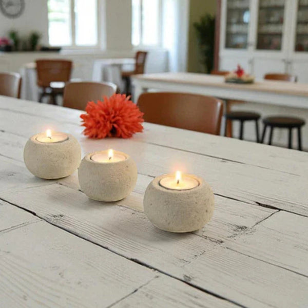 Il Portacandele Pallina di Tufa Italy è un set che unisce essenzialità e calore, trasformando la pietra in un gesto di luce.