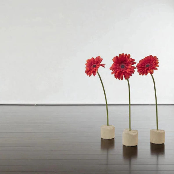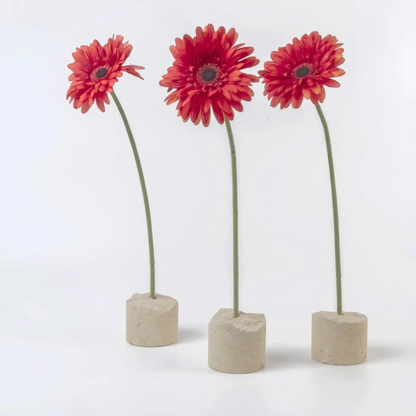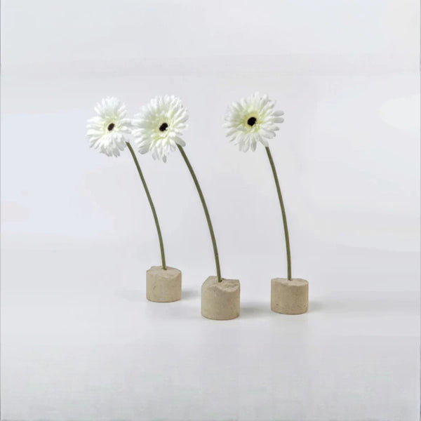 In questo equilibrio tra forza e delicatezza, la scultura racconta la poesia della materia che si apre alla bellezza naturale. Ogni portafiori è unico, con leggere variazioni di colore e superficie che rendono visibile la sua origine autentica. Le tracce della lavorazione artigianale e la porosità della pietra esaltano la luce e donano al pezzo un carattere caldo e vivo.