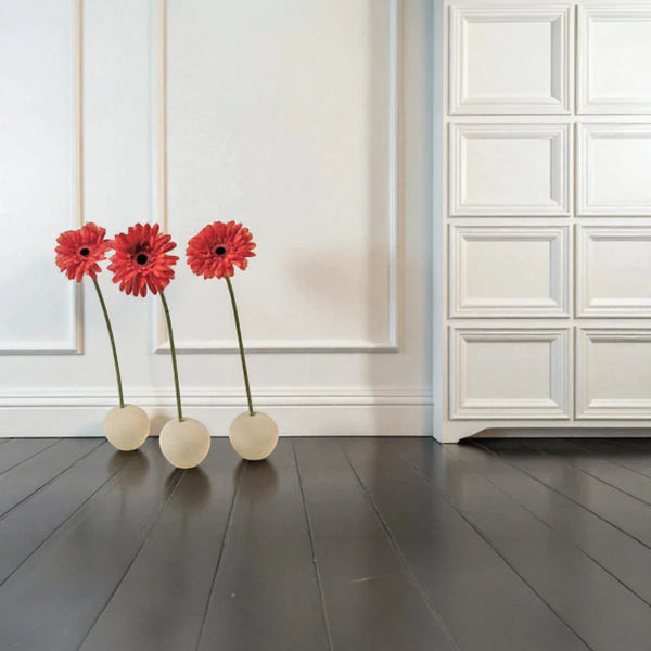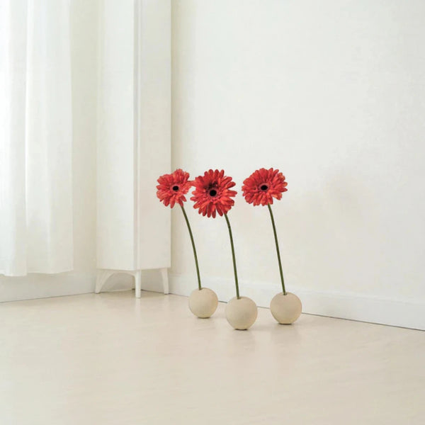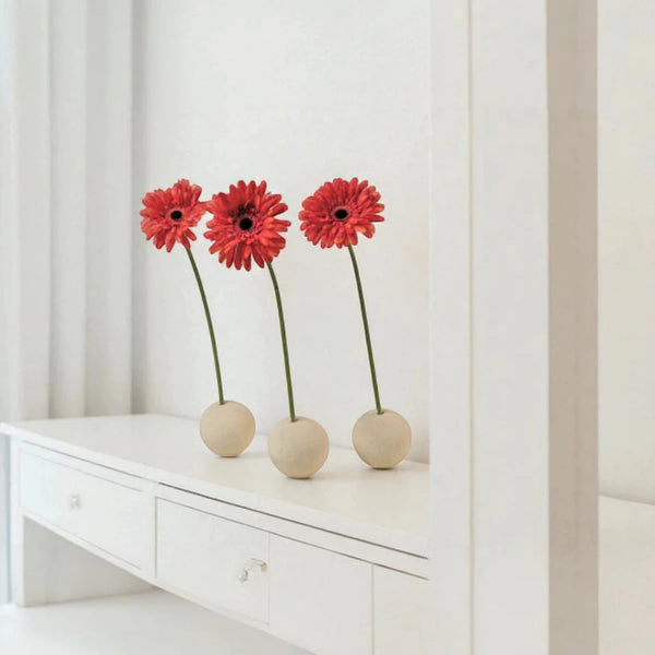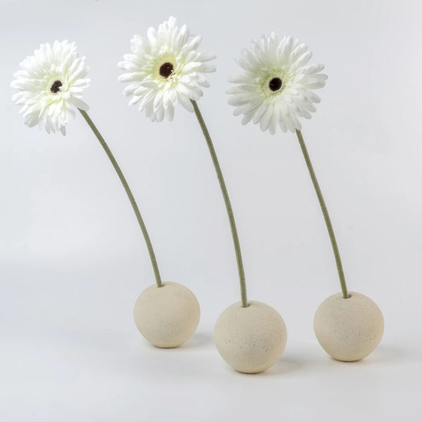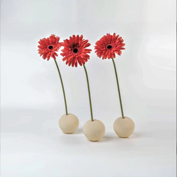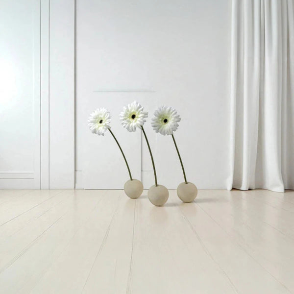I Portafiori Sfera, proposti in set da tre, diventano una composizione leggera e poetica. I fiori, inseriti delicatamente nelle aperture, sembrano nascere dalla pietra stessa: un incontro tra forza e fragilità, tra terra e vita. Il contrasto tra la solidità della sfera e la grazia del fiore crea un effetto visivo di sorprendente equilibrio, perfetto per spazi moderni, minimalisti o naturali.